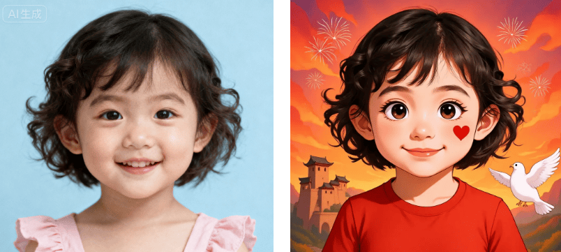 别急,换国庆头像从来不只是换张图片,做为实测过十多款 AI 修图东西的博从,每次生成的发型、服拆气概都连结分歧,Flux 正在艺术表示力上得分 9.3 分,上传照片就能生成融合国风元素的动漫头像,越来越多的头像悄然换上了 “中国红” 新拆 —— 有人加了飘荡的小国旗,